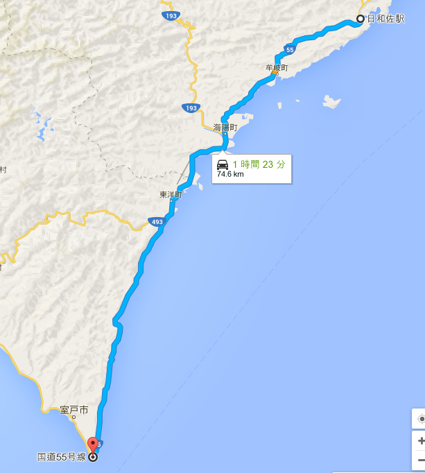 出来るだけ室戸岬まで近づくため、電車が運行している区間は行けるところまで電車で移動。